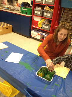 These pictures all demonstrate some of the centre activities available for children during their “free play time.” The first child is working on tracing curved lines, tracing straight lines and printing the letter A. The second picture is a climbing centre. This is the children's favorite as it allows for them to have a little bit more rough and tumble time. We have to be closely supervising to ensure there are no injuries! The last picture is apple stamps (again in the A week). The stamps help to get children familiar with paints, and other important language skills as the children talk about the feeling of the paints on their fingers.